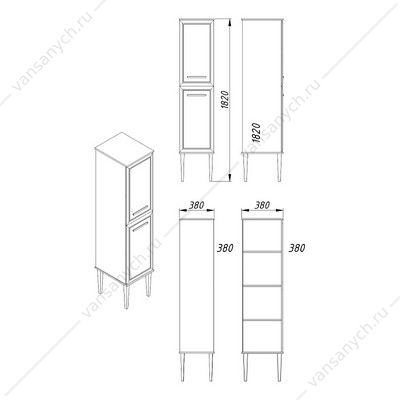 00096896 Пенал 38х38х182 Azario VEGA напольный, ПРАВЫЙ, белый гл./золото CS00096896 AZARIO (Россия/Китай) купить в Тюмени