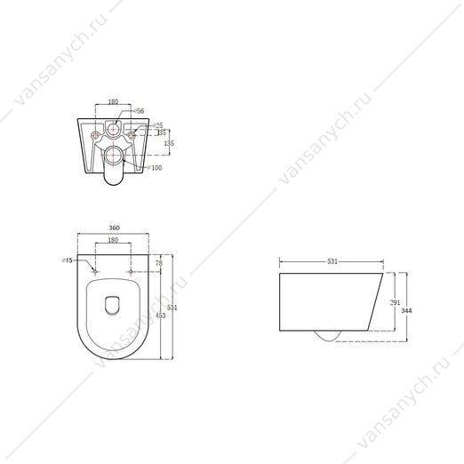 • Объем смывного бачка 6 л. Толщина бачка 10 см
